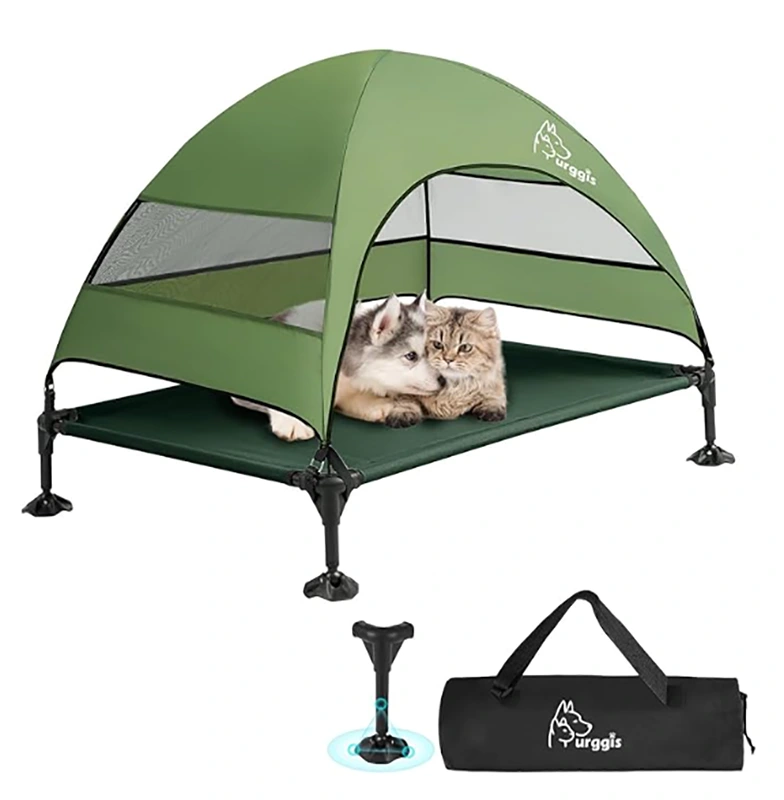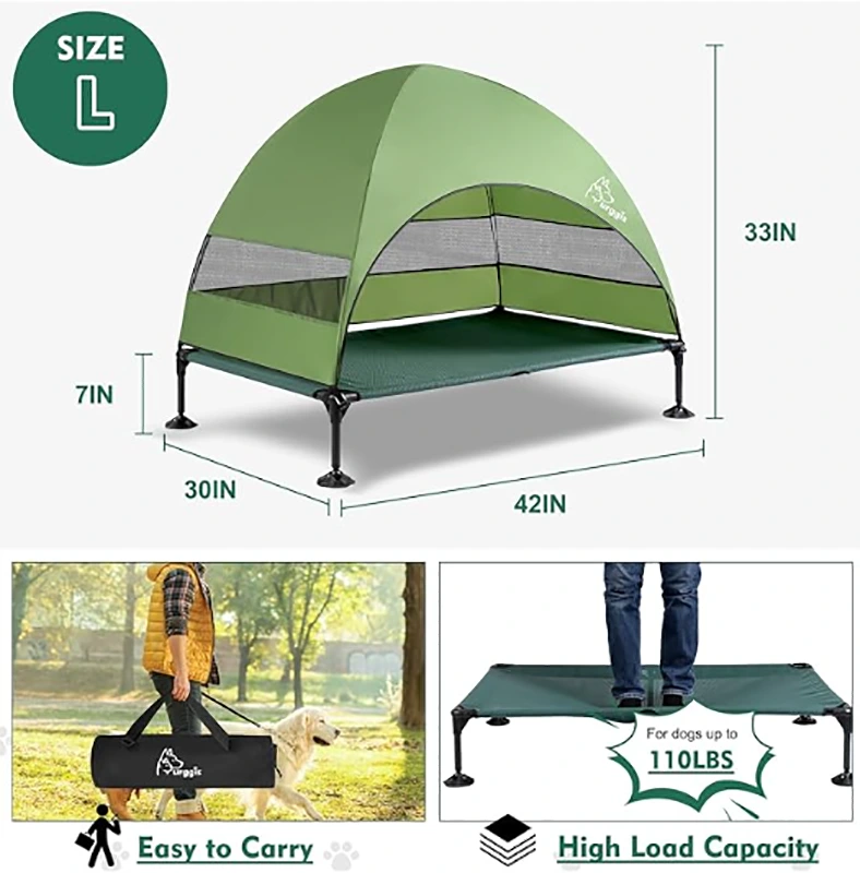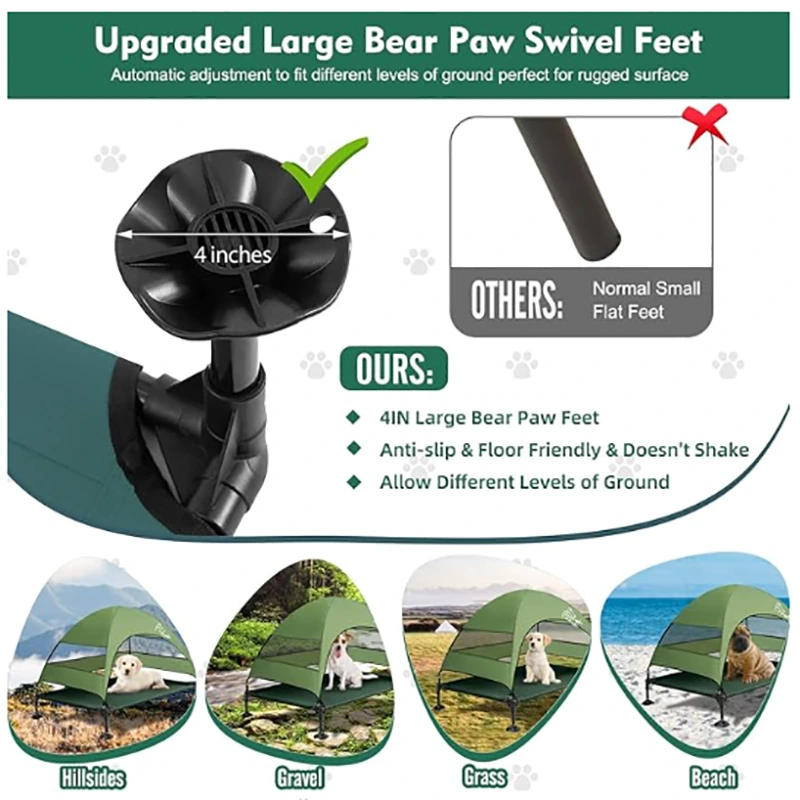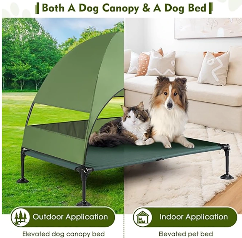 Лежак для собак із котом із балдахіном, модернізована піднята лежанка для собак із балдахіном, портативна піднята лежанка для собак із стійкими протиковзкими ніжками, ліжечко для домашніх тварин із ширшою тінню, підняті лежаки для собак для кемпінгу з великими собаками, використання в приміщенні та на вулиці.