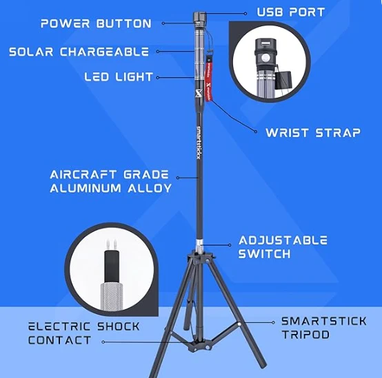 Два режими, доступні на світлодіодах: яскраво-біле світло, ідеально підходить для кемпінгу та червоний/синій спалах для аварійних ситуацій, що робить його ефективним інструментом для нічних паличок самозахисту.