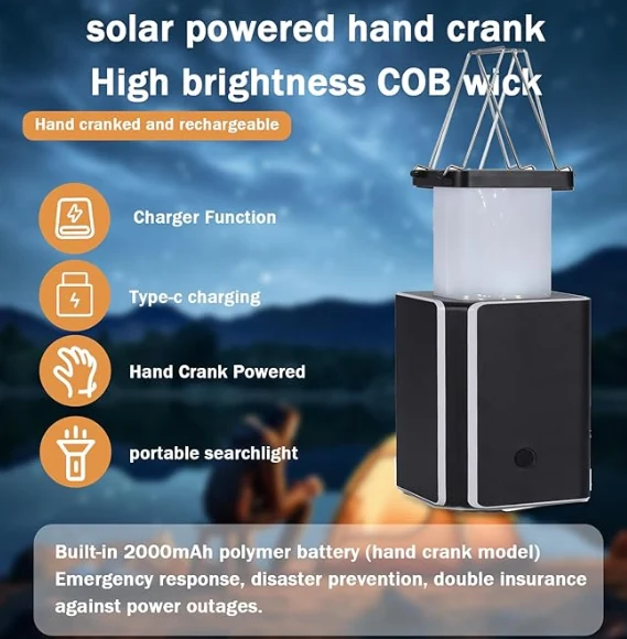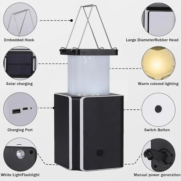 Світлодіодне сонячне кемпінгове світло, аварійне кемпінгове ліхтарі ліхтарі вручну генерацію живлення. Якщо у вас немає зарядного пристрою, а сонця немає, цей генератор, що завалений вручну, ідеально підходить для зарядки світла.
