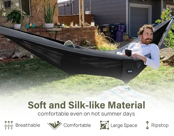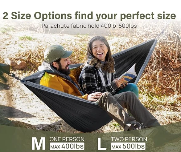 Легкий кемпінг Гамак Ідеальне поєднання довговічності та комфорту. Незалежно від того, чи ви кемпінг, походи, на пляжі чи просто відпочиваєте на своєму внутрішній дворик з гамакною підставкою, наші гамак - ідеальне доповнення, яке допоможе вам розслабитися та відпочити в кінцевому комфорті.