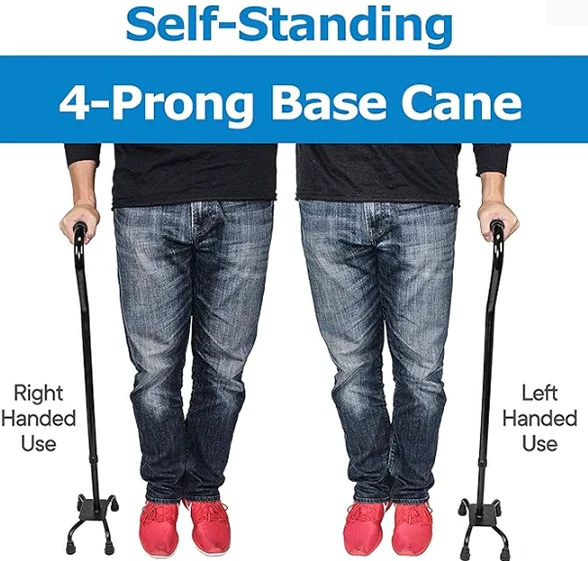 Медична тростина старої, кожна зубця покрита наконечником проти ковзання гуми для додаткової стабільності та безпеки. Квадазова основа робить його стоячим тростиною, яка усуває падіння або падіння на підлогу. Ідеально підходить для операції, коли ви не можете згинати чи дістатися.