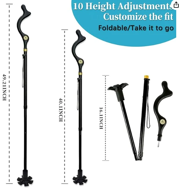Зовнішнє сходження обладнання для пішохідних полюсів, ходьба тростина, складена для чоловіків і жінок похилого віку для рівноваги, самостійна складна тростина, регульована висота, регульована проти ковзання, легка сплава, що підходить для руху, для допомоги руху для подорожей